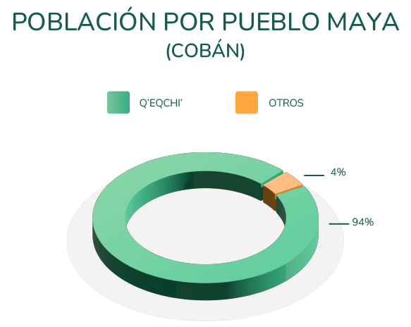 During their visits to the villages, the sisters encountered widespread alcoholism, machismo, and extreme material deprivation—some families didn’t even own plates or beds. When they began teaching, they realized that it wasn’t enough to simply promote educational programs—they also needed to implement intercultural bilingual education. The majority of Samac’s population speaks Q’eqchi’, so educational programs had to be relevant and context-sensitive. As shown in Figure 4, 96% of Cobán’s population is Q’eqchi’ Maya, and the remaining 4% belongs to other Indigenous groups.